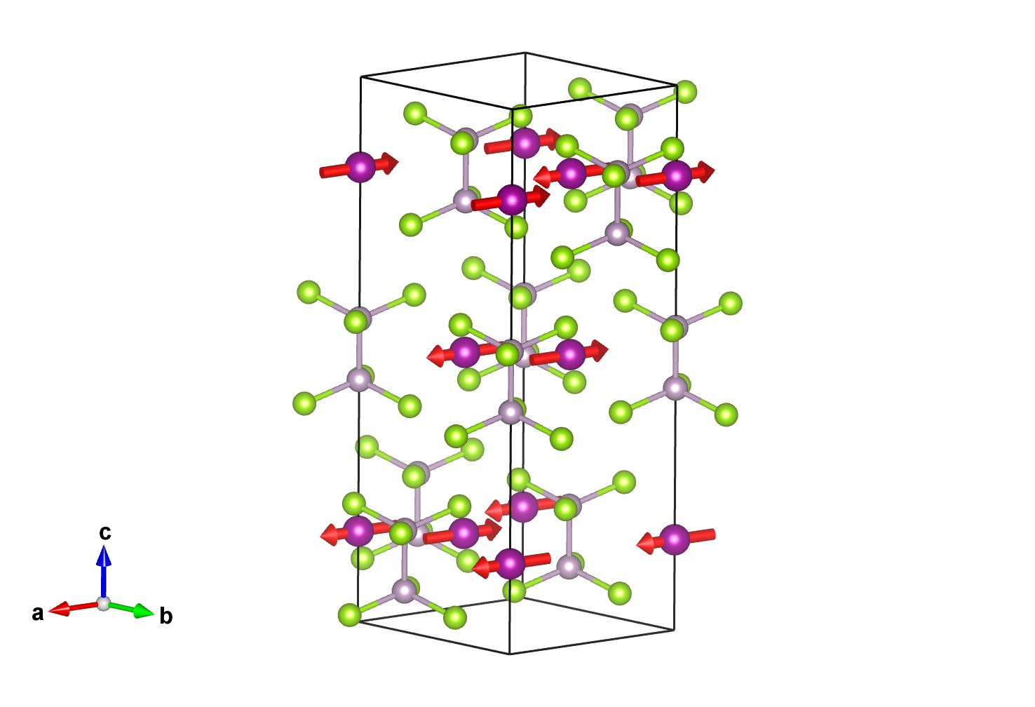 Positions and magnetic moments of all atoms in unit cell, with magnetic moment relations explicitly given: