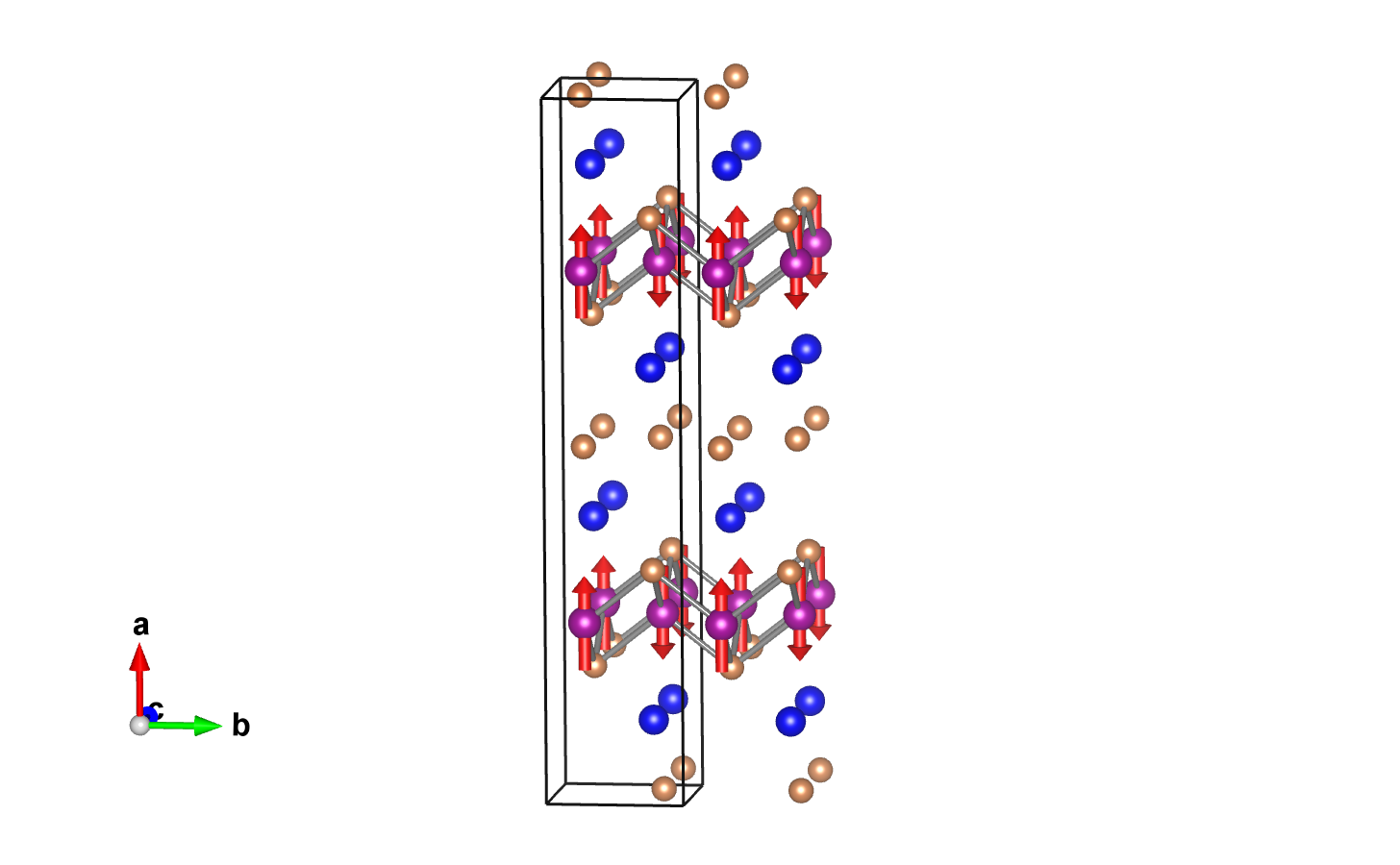 Positions and magnetic moments of all atoms in unit cell, with magnetic moment relations explicitly given: