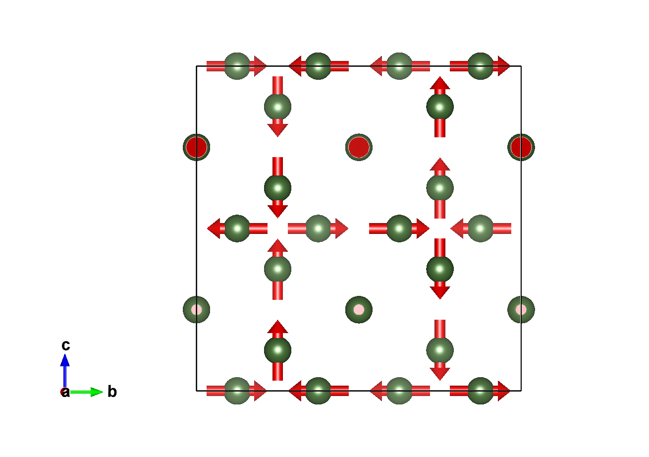 Positions and magnetic moments of all atoms in unit cell, with magnetic moment relations explicitly given: