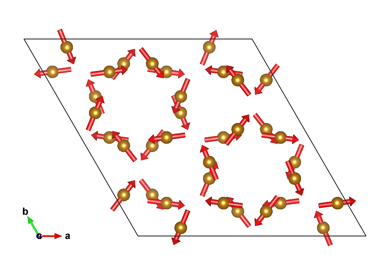 Positions and magnetic moments of all atoms in unit cell, with magnetic moment relations explicitly given: