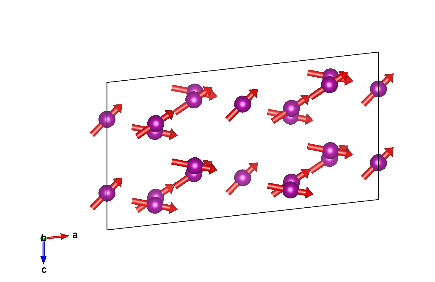 Positions and magnetic moments of all atoms in unit cell, with magnetic moment relations explicitly given:
