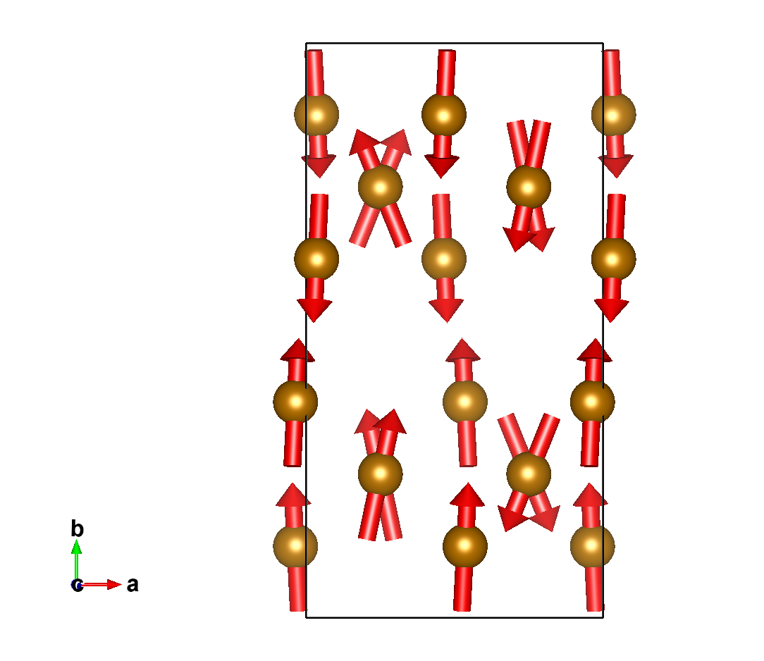 Positions and magnetic moments of all atoms in unit cell, with magnetic moment relations explicitly given: