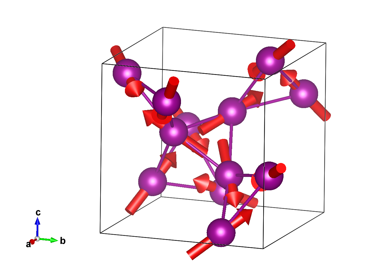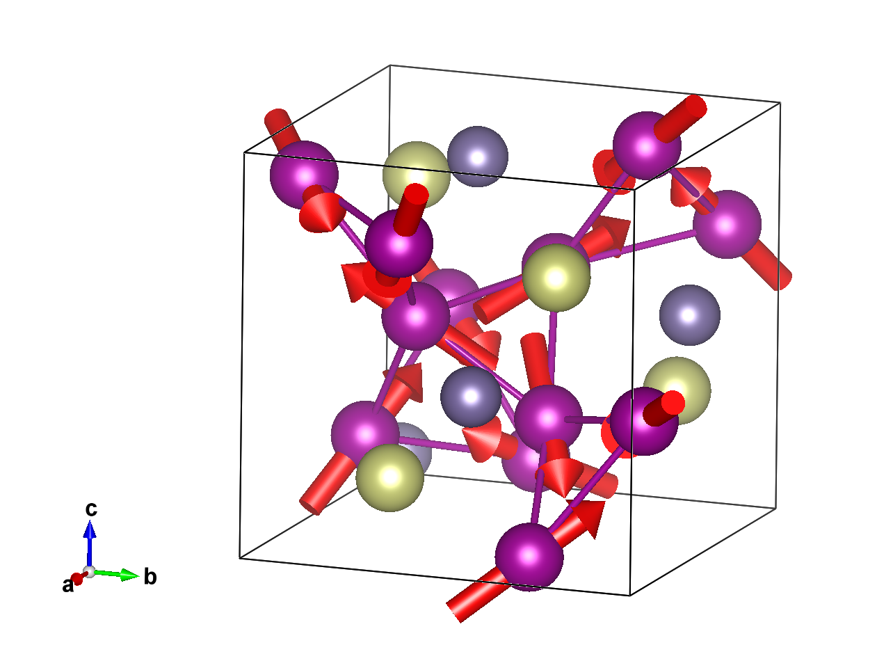 Positions and magnetic moments of all atoms in unit cell, with magnetic moment relations explicitly given: