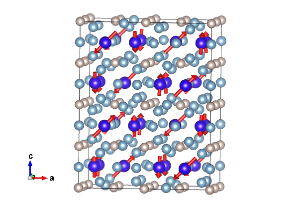 Positions and magnetic moments of all atoms in unit cell, with magnetic moment relations explicitly given: