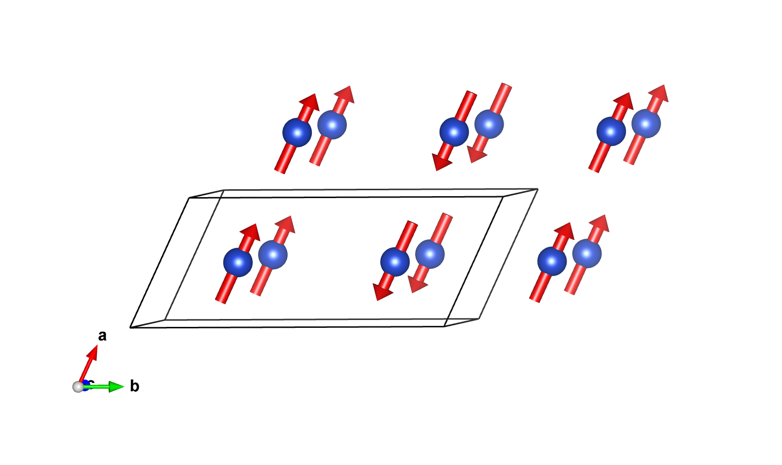 Positions and magnetic moments of all atoms in unit cell, with magnetic moment relations explicitly given: