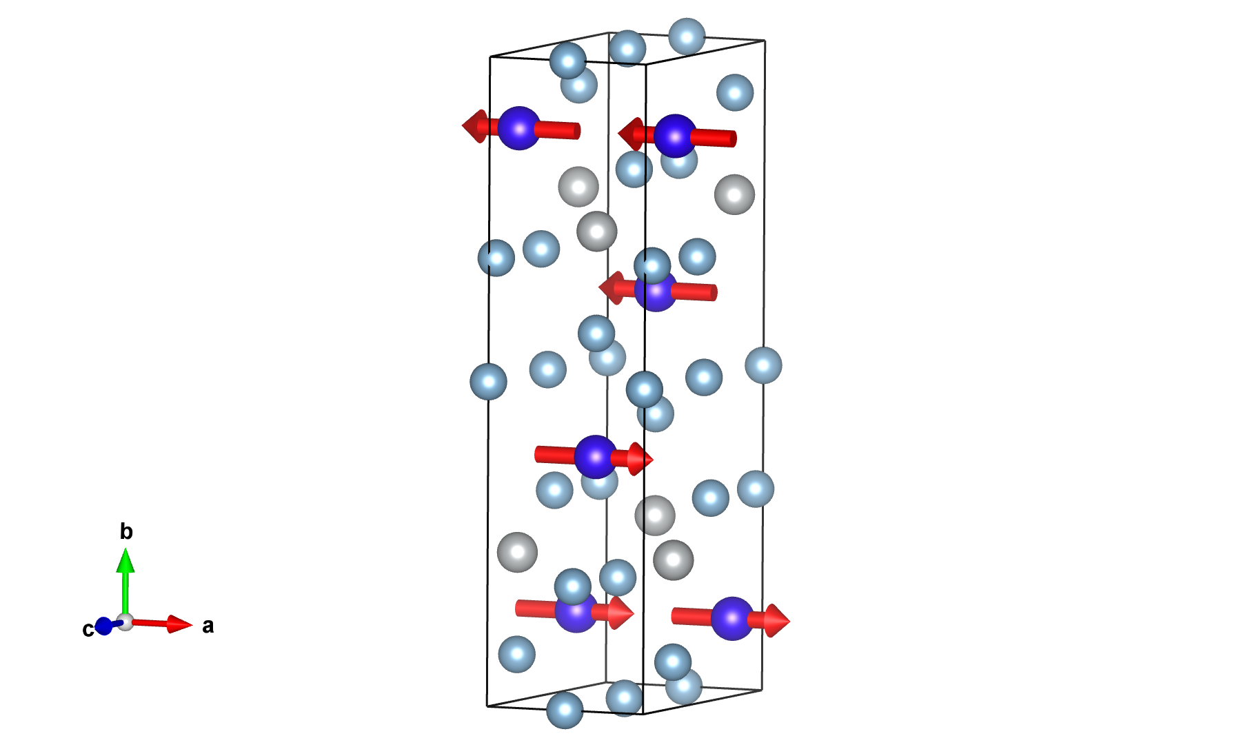Positions and magnetic moments of all atoms in unit cell, with magnetic moment relations explicitly given: