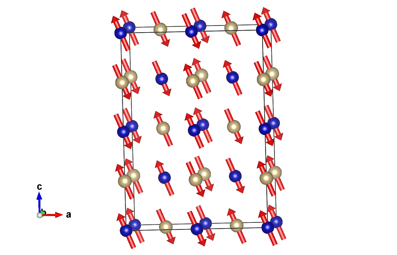 Positions and magnetic moments of all atoms in unit cell, with magnetic moment relations explicitly given: