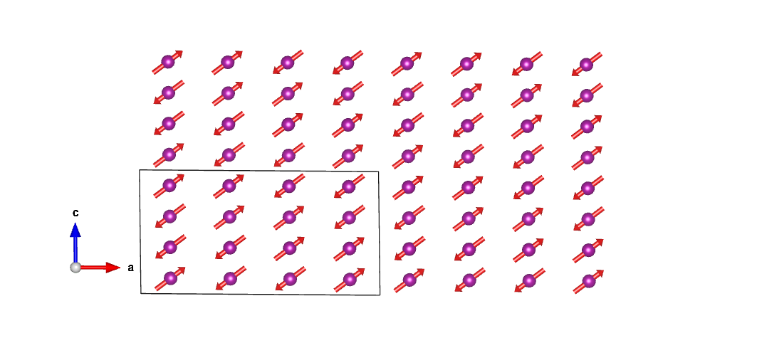Positions and magnetic moments of all atoms in unit cell, with magnetic moment relations explicitly given: