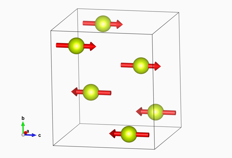 Positions and magnetic moments of all atoms in unit cell, with magnetic moment relations explicitly given: